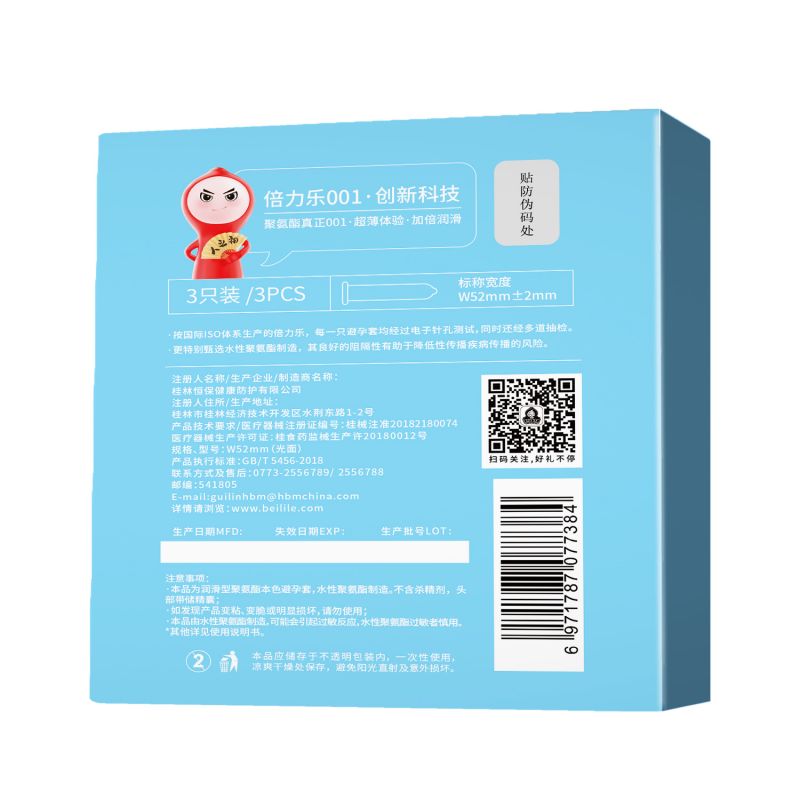 【避孕润滑】聚氨酯臻薄001 3只装 倍力乐